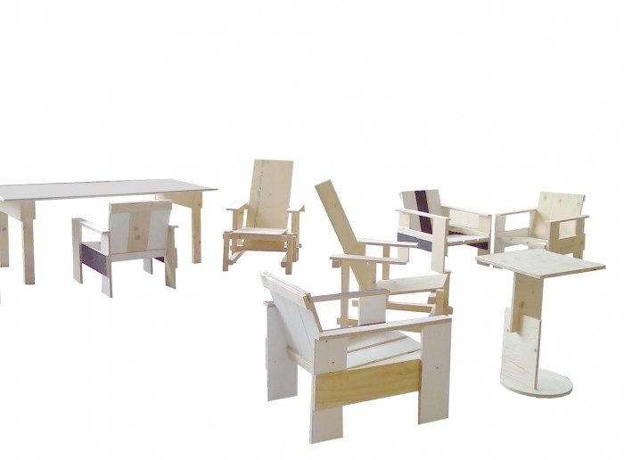 Nachbau der Rietveld Möbel aus gebrauchten Sperrholzplatten